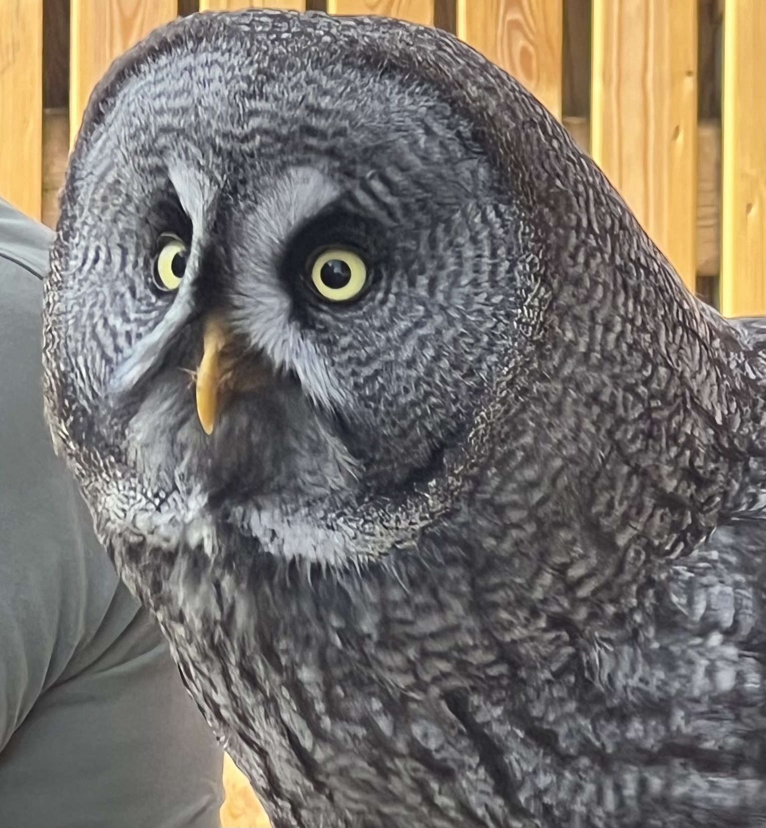 Per me è sempre stato il Gufo dagli occhi gialli, lì lo chiamavano ovviamente Hibou (non so se reale o cos’altro). Lanciato in volo, atterrò accanto al signore di cui si vede solo la spalla e non il viso un po’ preoccupato. Se ne stette lì qualche secondo in attesa del segnale per rivolare dell’addestratore.