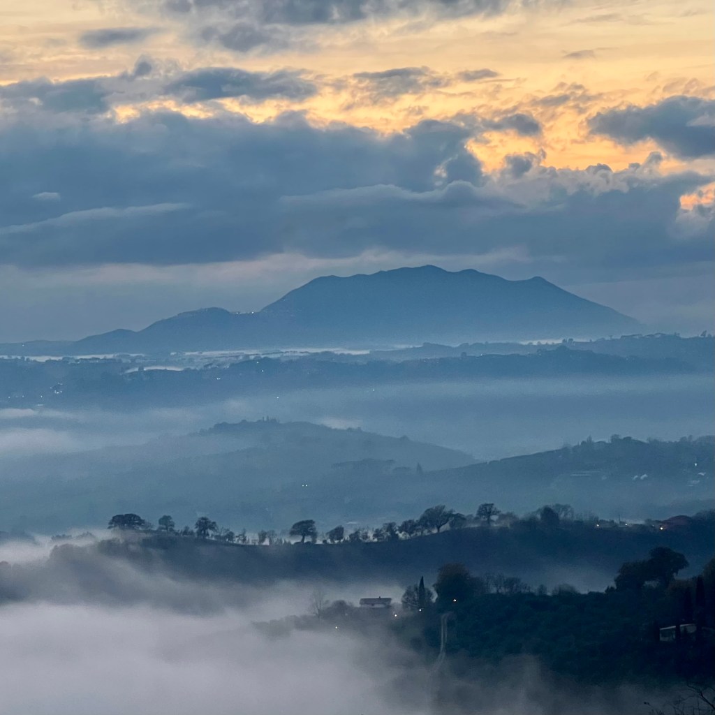 Ho visto le bozze è il calendario 2026 è davvero bello (scusate l’immodestia…). Per settembre ho scelto questa immagine quasi da pittore naif: una casa, degli alberi, una nota blu di fondo con un po’ di nebbia in basso e quella stradina che sembra quasi un taglio verticale dell’immagine, frutto della prospettiva dall’alto del Belvedere di Montopoli.