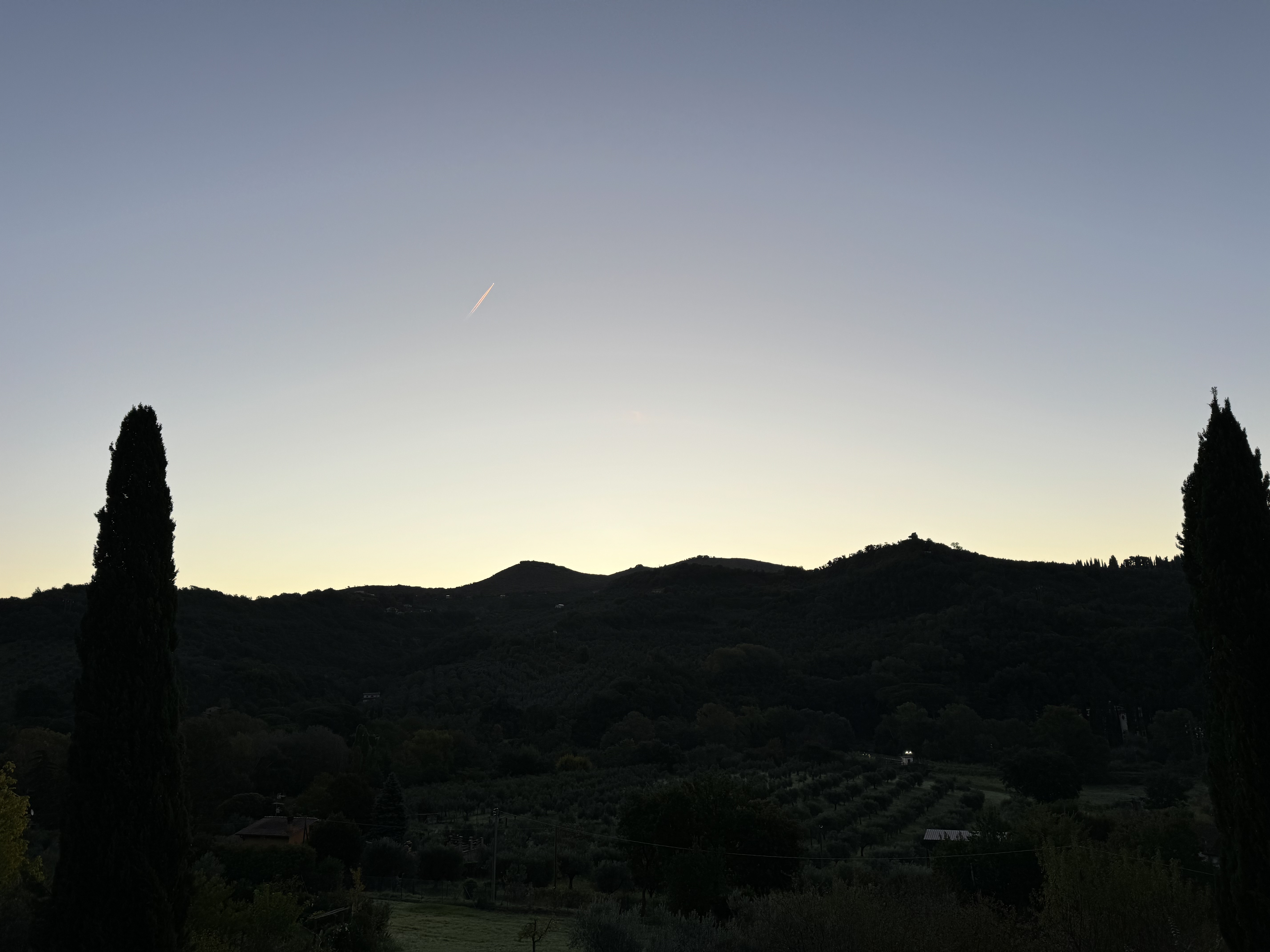 La foto l’ho scattata la mattina del 12 ottobre 2024 più meno alle sette di mattina. Mi ero affacciato alla finestra per vedere come sarebbe stato il tempo nella prima delle due Giornate d’Autunno del Fai di quell’anno, che furono in effetti un bel successo, con le aperture di Santa Maria della Neve a Casperia e dell’Oratorio di S. Caterina a Roccantica.