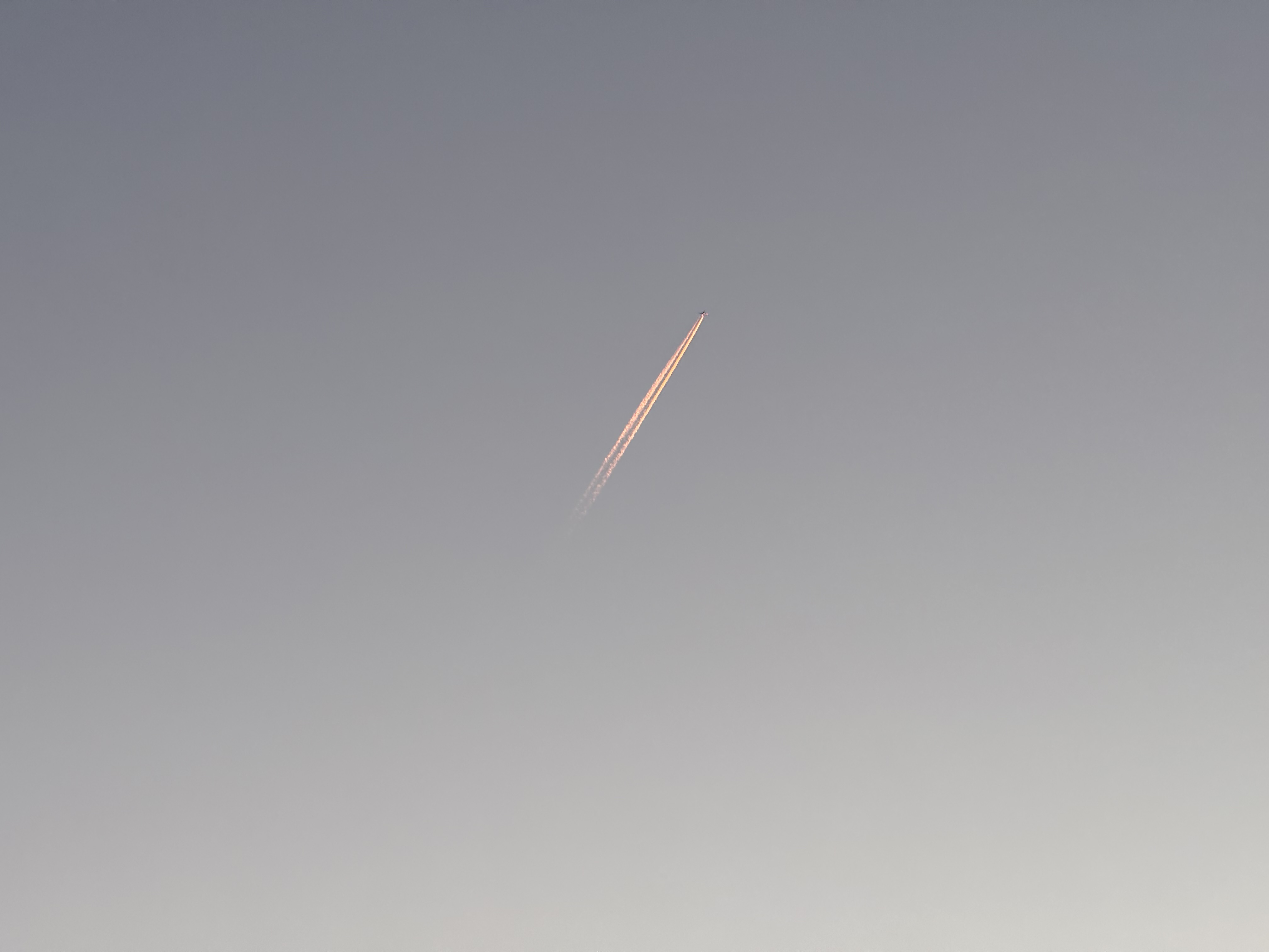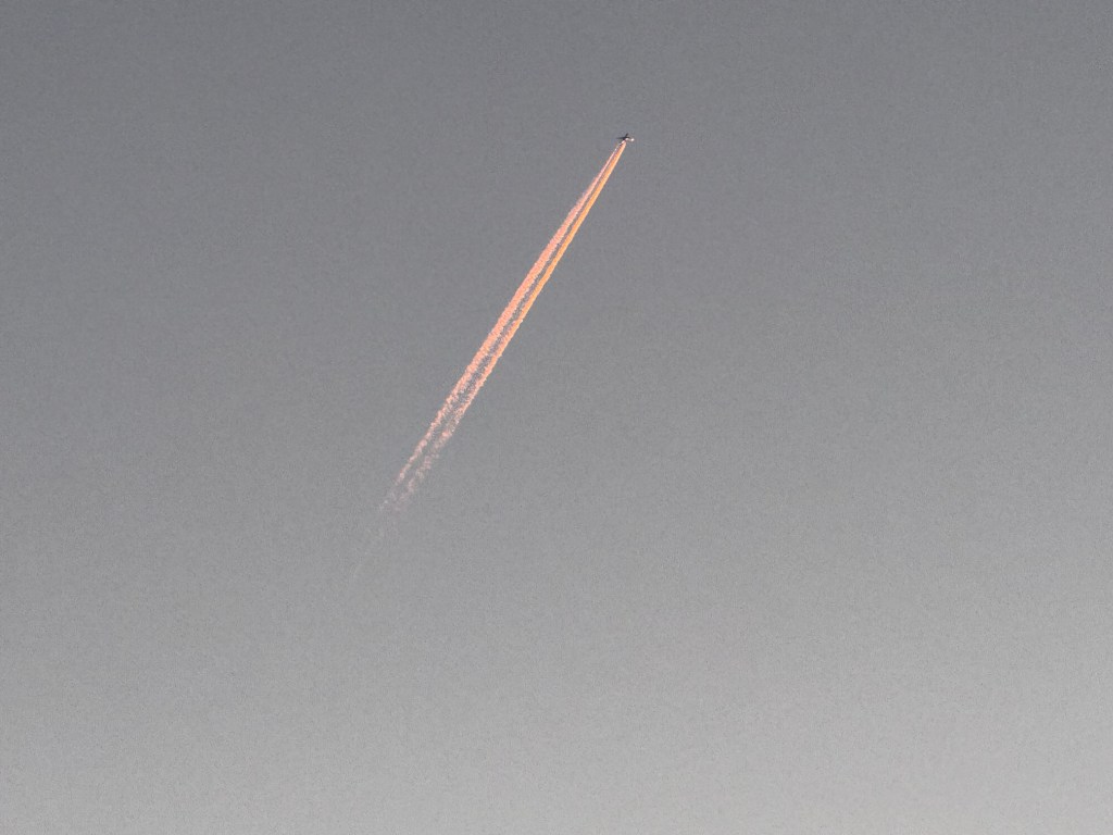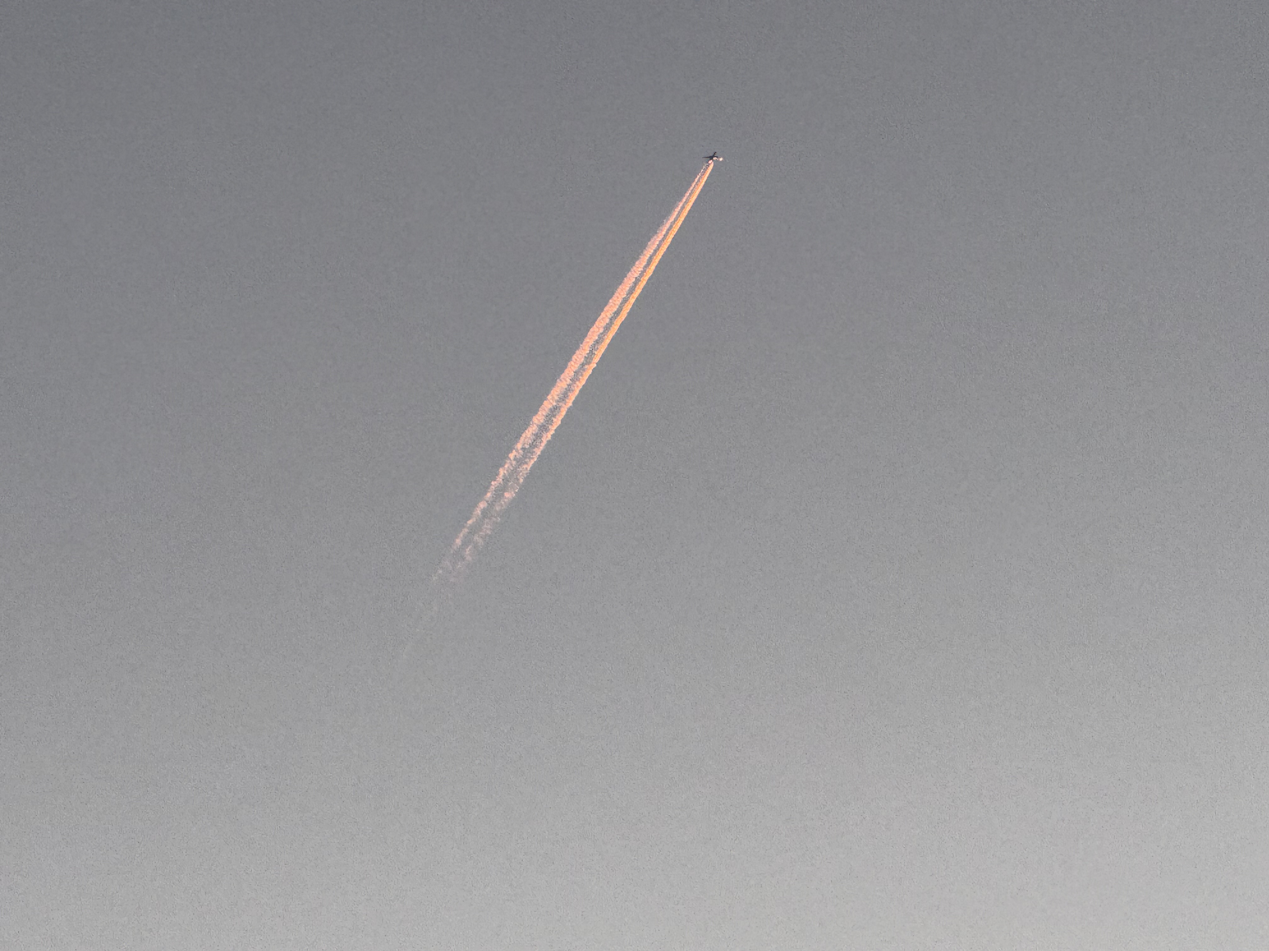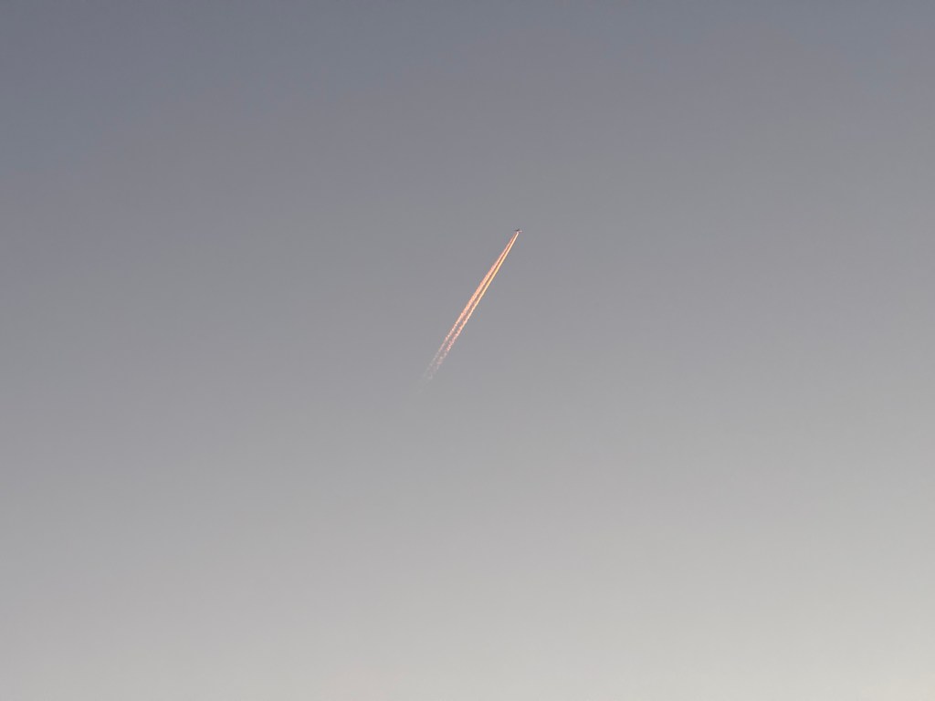In alto, quasi indistinguibile, la scia di un aereo che volava verso Oriente. La fisso, la inquadro e scatto un’altra foto del particolare.